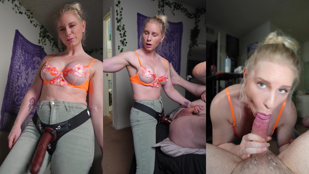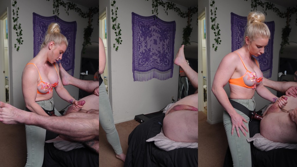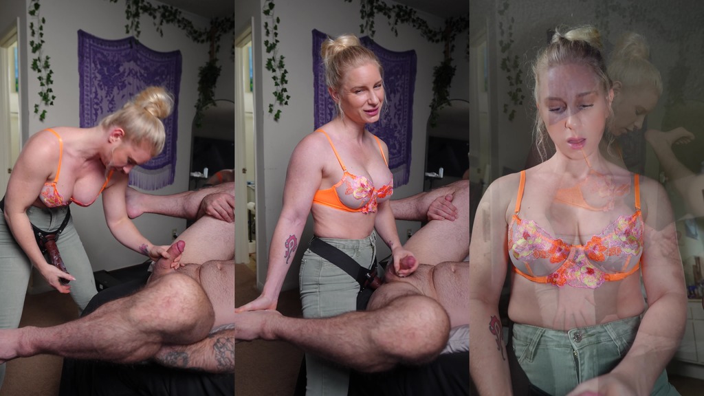Put my new jeans on then my cock and told step daddy I wanted that ass of his! I fuck him while stroking his cock and he CUMS all over for mommy and I lick it off him for a taste! POV for cumshot!