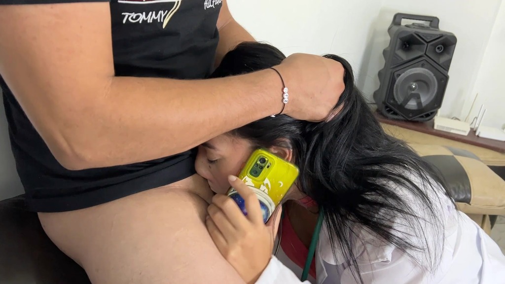 Stepmom Doctor Talking on the Phone with her Husband while Deepthroating her Perverted Stepson
